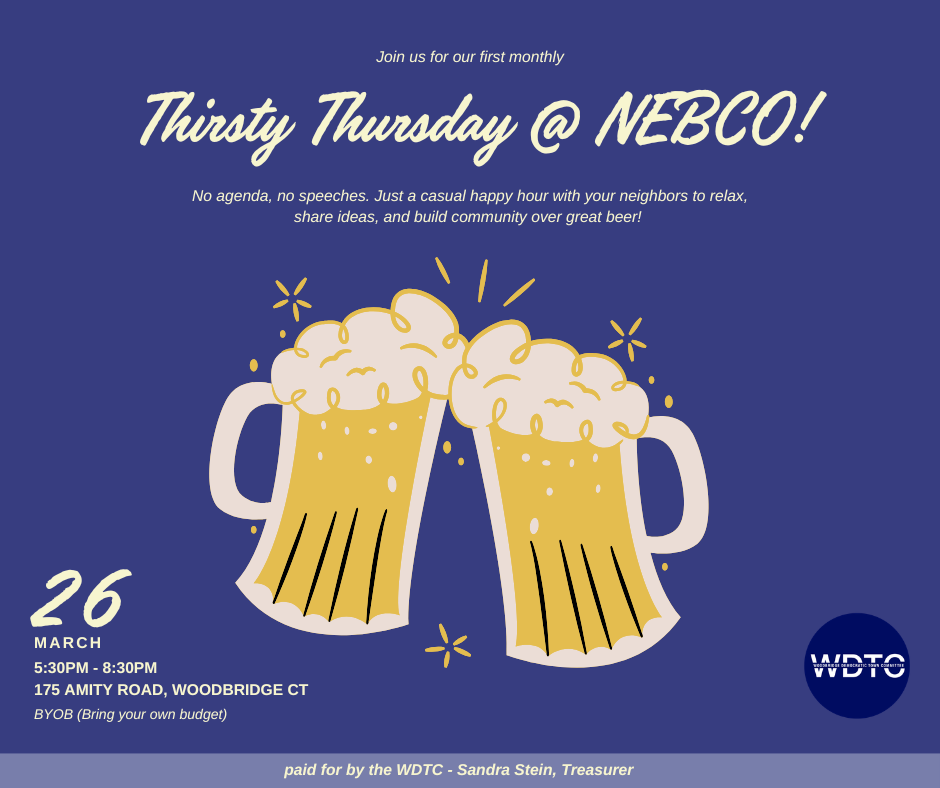 The Woodbridge Democratic Town Committee (WDTC) is the local Democratic Party organization in Woodbridge, CT. We are proud Woodbridge residents working to improve our town, our state, and our country through community engagement and political involvement at every level - especially here in our beautiful town of Woodbridge.
