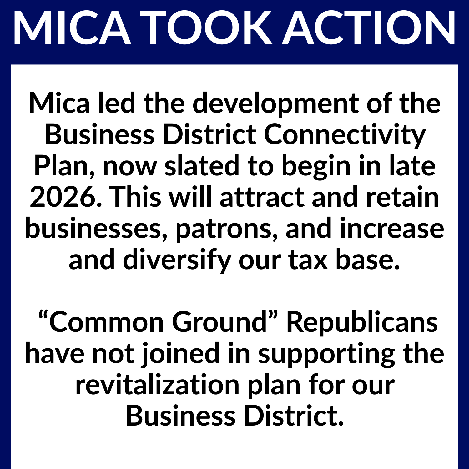 Mica Cardozo has achieved unparalleled progress over the past two years through collaborative and decisive action that benefits ourentirecommunity. His action plan increases and diversifies revenue to control our taxes, while prioritizing what residents love about our small town.